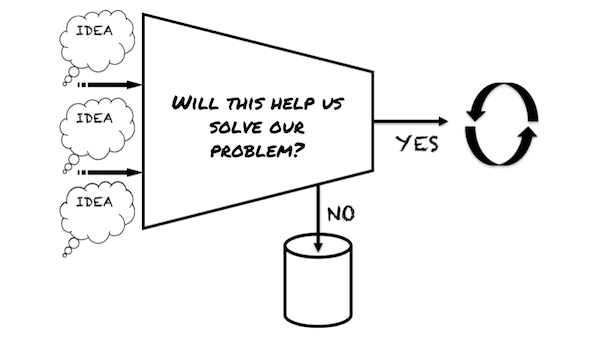 The product team started their efforts by brainstorming backlog items without any useful decision filters to determine if backlog items lined up with what they’re trying to accomplish.