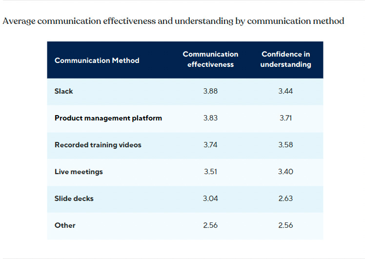 Here are the survey respondent’s choices for most effective method for communicating product strategy